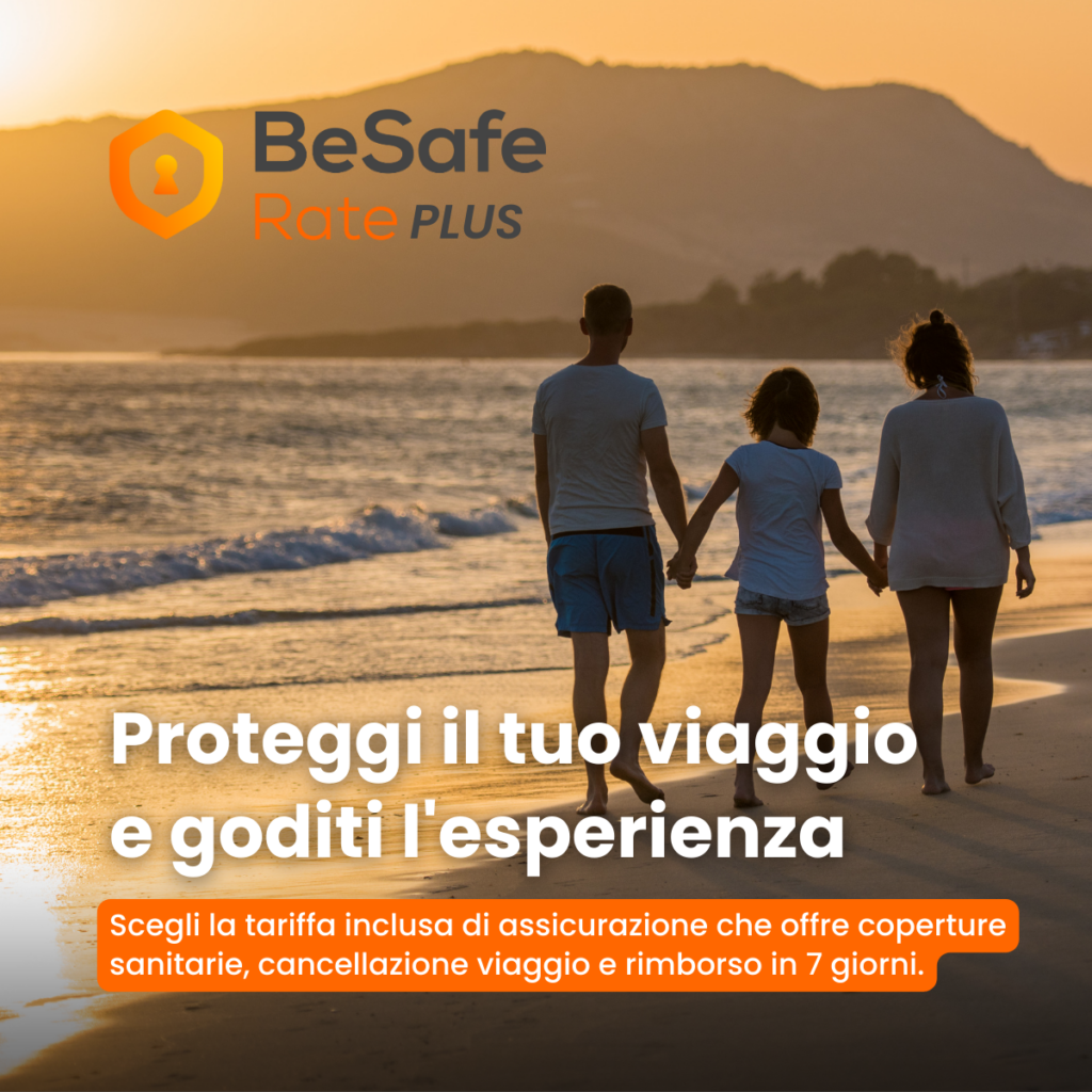 A Serenità è inclusa nel prezzo! Scegliendo l'irrinunciabile offerta BeSafe Rate con assicurazione inclusa, garantiamo il massimo della protezione per te e i tuoi cari durante il soggiorno.